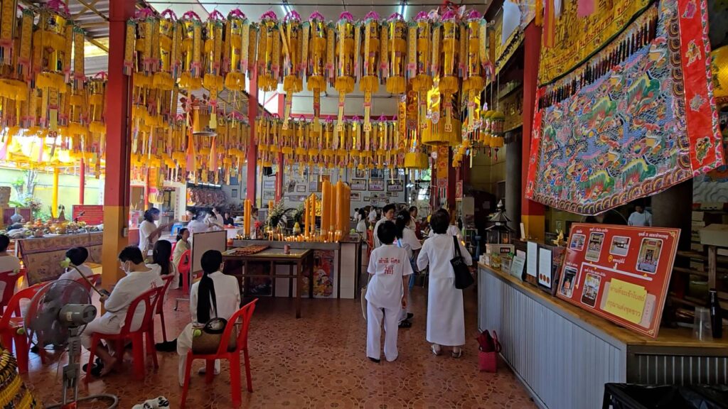 “วันนี้เป็นวันที่โรงเจได้อันเชิญเทพเจ้าลงมา เพื่อให้พรกับผู้ที่มาร่วมถือศีลกินเจ ตลอด 10 วัน และเมื่อสิ้นสุดเทศกาลก็จะอัญเชิญเทพเจ้าขึ้นสวรรค์ โดยในปีนี้คณะกรรมการฯ ได้กำหนดให้วันนี้เป็นวันอัญเชิญเทพเจ้าและสวดมนต์ ให้พรกับผู้มาร่วมพิธี และในวันต่อๆ ไปก็จะเริ่มเข้าสู่การกินเจตลอด 10 วัน ซึ่งปีนี้ทางโรงเจ ได้ประกอบอาหารแจกจ่ายให้กับผู้ถือศีลกินเจวันละ 3 มื้อ โดยจะทำอาหารมื้อละประมาณ 2-3 อย่าง และหุงข้าววันละ 4-5 กระสอบ ซึ่งประชาชนที่ถือศีลกินเจสามารถมารับอาหารทั้งนั่งทานที่โรงเจและห่อกลับไปรับประทานที่บ้านได้ เนื่องจากสถานการณ์โควิดปีนี้ได้คลี่คลายลงแล้ว โดยกำหนดจัดไว้ 3 เวลา เริ่มจากมื้อเช้าจะเริ่มแจกเวลา 08.00น.-10.00 น. มื้อเที่ยง 11.00น.-13.00 น. และมื้อเย็นจะเริ่ม 16.00น.-18.00 น. ของทุกวัน”
