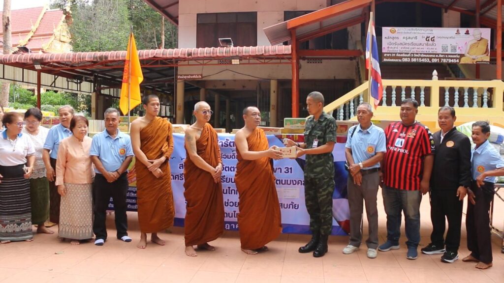 เมื่อเวลา 10.00 น.วันที่ 1 ส.ค.2568 ที่วัดป่ารัตนมงคล ต.ศิลา อ.เมือง จ.ขอนแก่น พล.ต.กิตติพงษ์ เนื่องชมภู ผบ.มทบ.23 รับมอบข้าวสาร 2 ตัน ,อาหารแห้ง,มะนา,น้ำดื่ม,ยากันยุง,ถุงเท้า ,พระเครื่องและเครื่องอุปโภคบริโภค จากพระครูประยุตสารธรรม เจ้าอาวาสวัดป่ารัตนมงคล พร้อมคณะอุบาสก อุบาสิกา ชาวบ้าน บ.กา,บ.ดอนหญ้านาง,หน่วยงานภาครัฐ-เอกชน และนักเรียนสมาธิจากสถาบันพลังจิตานุภาพ สาขา 31 วัดศรีจันทร์ ห้องเรียนวัดป่ารัตมงคล ที่ได้ร่วมกันรับบริจาคและร่วมบริจาคตามกำลังศรัทธาเพื่อส่งมอบให้กับ มทบ.23 นำไปสนับสนุนการปฎิบัติภารกิจสนามให้กับพื้นที่จังหวัดตามแนวเขตชายแดนจากข้อพิพาทระหว่างไทยและกัมพูชาที่กำลังเกิดขึ้นอยู่ในขณะนี้