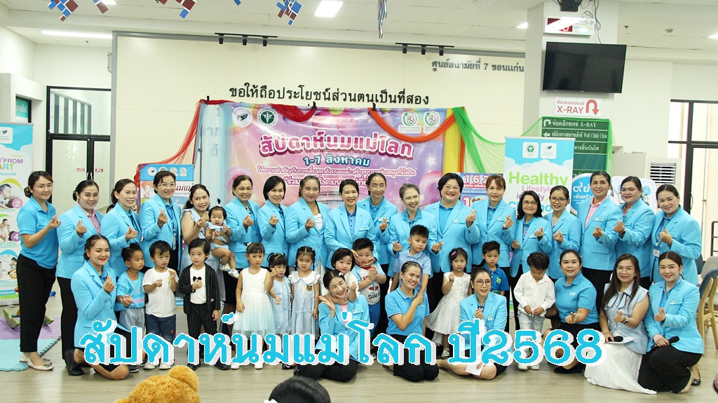 (มีคลิปข่าว)เมื่อวันที่ 6 สิ่งหาคม 2568 ณ ห้องโถงชั้น 1 อาคารโรงพยาบาลศูนย์อนามัยที่ 7 ขอนแก่น ได้มีพิธีเปิดงานสัปดาห์นมแม่โลก ปี2568 การส่งเสริมสนับสนุนปกป้องการเลี้ยงลูกด้วยนมแม่ มี ดร.พญ.สุจิรา ขวาแช้น ผู้อำนวยการโรงพยาบาลศูนย์อนามัยที่ 7 ขอนแก่น เป็นประธานเปิด มีดร.ปิยะนันท์ โพธิ์ชัย พยาบาลวิชาชีพชำนาญการพิเศษ หัวหน้ากลุ่มพยาบาล กล่าวถึงวัตถุประสงค์ของการจัดงาน ภายในงานมีเวทีเสวนาส่งเสริมความรู้ความเข้าใจเกี่ยวกับการเลี้ยงลูกด้วยนมแม่แล้ว ยังมีการมอบเกียรติบัตรเพื่อเชิดชูเกียรติแก่บุคคลที่มีส่วนร่วมในการส่งเสริม การเลี้ยงลูกด้วยนมแม่