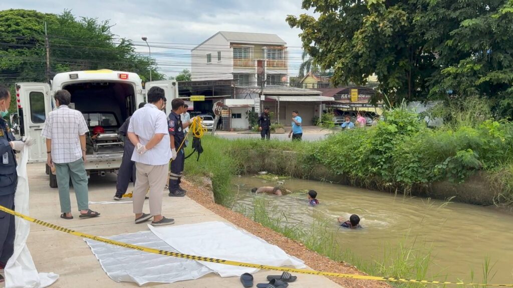 เมื่อเวลา 14.30 น.วันที่ 7 ก.ย.2568 ร.ต.ท.สันติ เชื้อหมูดู รอง สว.(สอบสวน) สภ.เมืองขอนแก่น ได้รับแจ้งจากศูนย์วิทยุ "แก่นนคร 191" สภ.เมืองขอนก่นว่า มีคนพบศพผู้เสียชีวิต ลอยอยู่ บริเวณคลองชลประทานบ้านหนองใหญ่ ริมถนนประชาสโมสร เขตเทศบาลนครขอนแก่น หลังรับแจ้งจึงรายงานให้ผู้บังคับบัญชาทราบ ก่อนรุดไปตรวจสอบที่เกิดเหตุพร้อมกับ พ.ต.อ.ยศวัจน์ แก้วสืบธัญนิจ ผกก.สภ.เมืองขอนแก่น แพทย์เวร รพ.ขอนแก่นและหน่วยกู้ภัยสว่างขอนแก่นสามัคคีอุทิศ