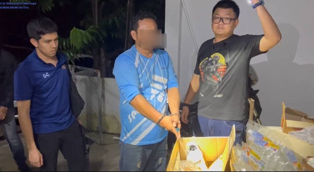 “จากการตรวจค้น พบยาบ้ารวมทั้งหมด 918 เม็ด ซุกซ่อนอยู่ในกระเป๋าและกล่องกระดาษหน้าห้องเช่า พร้อมโทรศัพท์มือถือและรถจักรยานยนต์ที่ใช้ในการกระทำความผิด ซึ่งจากการสอบสวนผู้ต้องหาให้การรับสารภาพว่า ยาบ้าดังกล่าวได้มาจากบุคคลสัญชาติลาวไม่ทราบชื่อ โดยใช้โทรศัพท์มือถือในการติดต่อซื้อขาย และรับว่าได้เสพยาเสพติดก่อนถูกจับกุม”