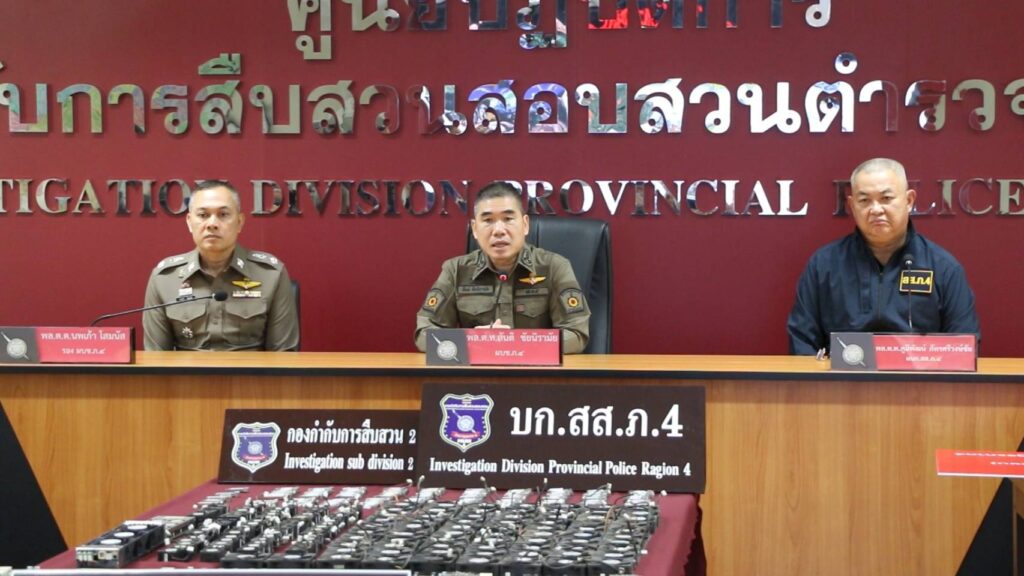 เมื่อเวลา 13.30 น. วันที่ 27 ต.ค.2568 ที่กองบังคับการสืบสวนสอบสวนตำรวจภูธรภาค 4 (บก.สส.ภ.4) พล.ต.ท.สันติ ชัยนิรามัย ผบช.ภ.4 พร้อมด้วย พล.ต.ต.นพเก้า โสมนัส รอง ผบช.ภ.4,พล.ต.ต.ภูมิพัฒน์ ภัทรศรีวงษ์ชัย ผบก.สส.ภ.4,พ.ต.อ.พงศ์ฤทธิ์ คงศิริสมบัติ รอง ผบก.สส.ภ.4และ พ.ต.อ.นุติ ศักดิ์สุภาพ ผกก.สส.2 บก.สส.ภ.4 ร่วมกันแถลงข่าวผลการจับกุม นายสมพงศ์ หรือก็อต อายุ 42 ปี ชาว อ.รัตนวาปี จ.หนองคาย, นายทะนงศักดิ์ หรืออ๋อง อายุ 27 ปี และนายสัญชัย หรือไอซ์ อายุ 22 ปี ชาว อ.โซ่พิสัย จ.หนองคาย หลังถูกเจ้าหน้าที่ตำรวจชุดสืบสวน 2 บก.สส.ภ.4 จับกุมตัวได้ขณะกำลังแยกชิ้นส่วนแผงวงจรของกลางอยู่ภายในสวนยางพารา ไม่มีบ้านเลขที่ บ.โนนแก้ว ต.หนองพันทา อ.โซ่พิสัย จ.บึงกาฬ พร้อมของกลางรถยนต์กระบะอีซูซุ ดีแมก สีบรอนท์เงิน หมายเลขทะเบียน กข-2334 มหาสารคาม ,บอร์ดประมวลผลสัญญาณไร้สาย จำนวน 20 ชิ้น,โมดูลรับส่งสัญญาณ จำนวน 103 ชิ้น,อุปกรณ์เน็ตเวิร์กสวิตช์ฮับ จำนวน 52 ชิ้น,แบตเตอรี่ลิเธียม จำนวน 11 ก้อน,ฝาครอบแผงวงจร จำนวน 29 ชิ้น,ลวดทองแดงนำหนัก 10 กก.,ชุดตัดแก๊สจำนวน 1 ชุดและถังแก๊ส 15 กก. คิดเป็นมูลค่าความเสียหายนวมกว่า 5 ล้านบาท