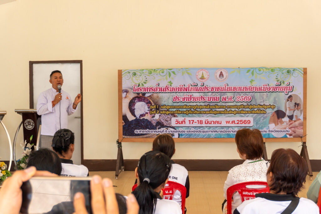 เมื่อวันที่ 17 มีนาคม 2569 สำนักบริการวิชาการ มหาวิทยาลัยขอนแก่น ผนึกกำลัง เทศบาลเมืองบ้านทุ่ม จัดอบรมเชิงปฏิบัติการภายใต้ “โครงการส่งเสริมอาชีพให้แก่ประชาชนในเขตเทศบาลเมืองบ้านทุ่ม ประจำปีงบประมาณ 2565” โดยนำนวัตกรรมการแปรรูปข้าวมาสร้างมูลค่าเพิ่ม สอดรับนโยบายเศรษฐกิจ BCG เพื่อสร้างรายได้ ลดความเหลื่อมล้ำ และยกระดับคุณภาพชีวิตชุมชนอย่างยั่งยืน ณ ศาลาประชาคมหมู่ที่ 6 บ้านแดงน้อย อ.เมือง จ.ขอนแก่น