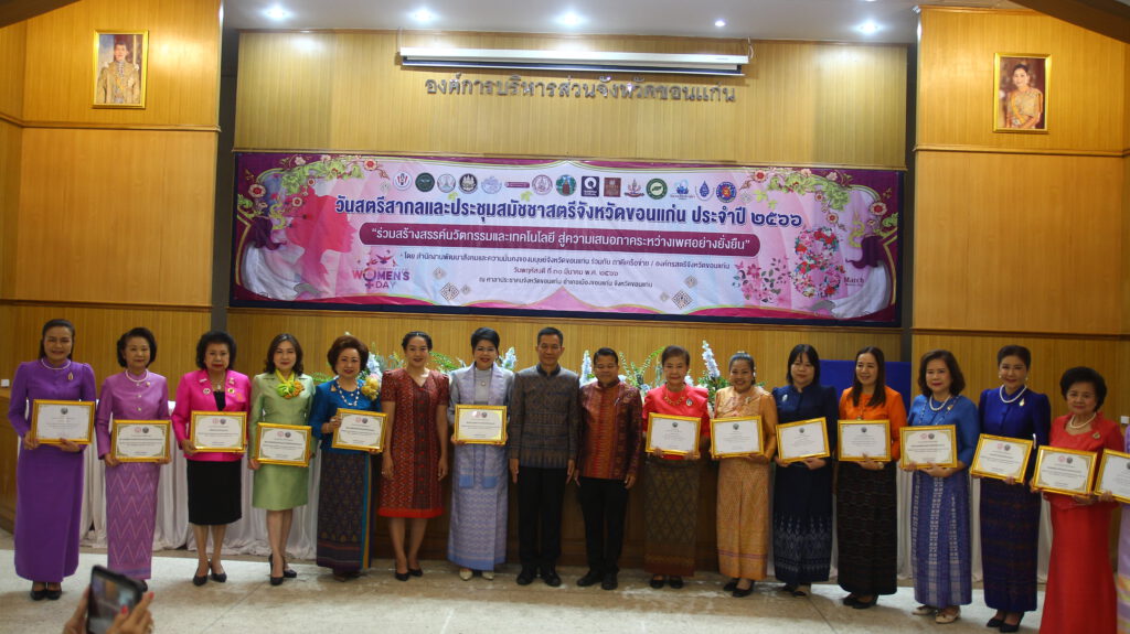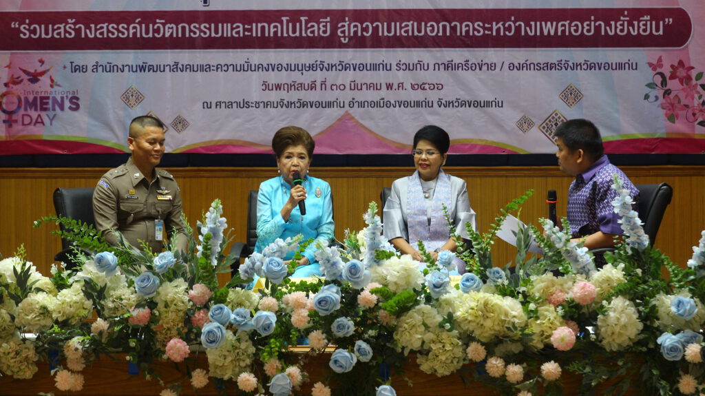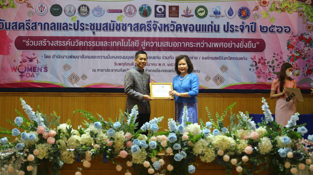 เมื่อวันที่30 มีนาคม 2566 เวลา10.00น.ที่ผ่านมา ณ หอประชุมศาลาประชาคมจังหวัดขอนแก่นได้มีการจัดกิจกรรมจัดงานวันสตรีสากลและประชุมสมัชชาสตรีจังหวัดขอนแก่น ประจำปี2566 โดยภายในงานได้รับเกียรติจากนายพันธ์เทพ เสาโกศล รองผู้ว่าราชการจังหวัดขอนแก่นเป็นประธานเปิดงาน มีนายสุภวัฒน์ หนูพริก กล่าวรายงาน มีพีธีผู้นำสตรี ขึ้นกล่าวแสดงเจตนารมณ์วันสตรีสากล มีนายกเหล่ากาชาดจังหวัดขอนแก่นและมอบเกียรติบัตร์ให้แก่องค์กรสตรีผู้สนับสนุนการจัดงานจำนวน 8 องค์กร การมอบเกียรติบัตร์แก่สตรีไทยดีเด่นประจำปี 2565จำนวน 3 ราย มอบเกียรติบัตร์แก่แม่ดีเด่นแห่งชาติ ประจำปี 2565 จำนวน 4 ราย นอกจากนี้ภายในงานยังมีการเปิดเวทีการเสวนา ในหัวข้อ”เราจะนำนวัตกรรมการศึกษาและการเทคโนโลยี ดิจิตอลมาใช้ในการเสริมสร้างพลังสตรีและเด็กเพื่อให้เกินความเสมอภาคระหว่างเพศในสังคมได้อย่างไร” มีผู้ร่วมเสวนามีดังนี้ นายกเหล่ากาชาดจังหวัดขอนแก่น นางปราณี ธีระภานุ แม่ดีเด่นแห่งชาติ ตัวแทนตำรวจดิจิทัล ผู้ได้รับผลกระทบและเสียหายจากสื่อดิจิทัล รับฟังวิดิโอคำปราศรัยนายกรัฐมนตรีเนื่องในวันสตรีสากลปี 2566 ภายในงานมีกิจกรรมการแสดง การให้คำปรึกษาด้านสุขภาพ การให้ความรู้ฝึกอาชีพ การแนนำภารกิจขององค์กรเครือข่ายเอกชนที่ทำงานเกี่ยวกับด้านสตรี การแนะนำด้านสวัสดิการของกระทรวง พม. กิจกรรมการ ออมเงิน(กอช.) มีผู้ร่วมงานกว่า 300 คน
