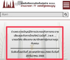 ผู้สื่อข่าวได้รับรายงานข่าวจาก นายวรพจน์ ลัภโต ประธานชมรมผู้ประกอบกิจการวิทยุกระจายเสียงภาคประชาชน เปิดเผยว่า วันนี้ ได้รับแจ้งจากพรรคเพื่อไทยว่า ได้เสนอร่างกฎหมายแก้ไข พรบ.องค์กรจัดสรรคลื่นความถี่ฯ พ.ศ.2553 และร่างแก้ไข พรบ.การประกอบกิจการวิทยุกระจายเสียง พ.ศ.2551 กลับเข้าสู่สภาผู้แทนราษฎรอีกครั้ง หลังจากที่ได้ยื่นเข้าสภาผู้แทนราษฎรไปแล้ว เมื่อปี 2565 แต่มีการยุบสภาก่อน ร่างแก้ไข พรบ.ดังกล่าวนี้ เป็นการแก้ไขให้มีการยกเลิกการประมูลคลื่นความถี่ ของวิทยุผู้ทดลองออกอากาศประเภทธุรกิจ ที่ออกอากาศไม่เกิน 500 วัตต์ ซึ่งในปัจจุบันมีอยู่ประมาณ 3,100 สถานี และกำหนดให้ผู้ทดลองออกอากาศทุกประเภทที่มีอยู่ 3,909 สถานี เปลี่ยนไปเป็นวิทยุภาคประชาชน โดยวิทยุประเภทชุมชน และประเภทสาธารณะ สามารถหารายได้ได้เท่าที่เพียงพอกับการบริการงาน