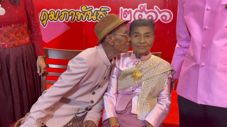เจ้าบ่าววัย 77 ปี แห่ขันหมากสู่ขอสาวที่อยู่ด้วยกันมานานกว่า 50 ปี
