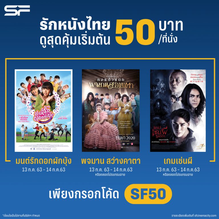 SF Cinemaจัดโปรโมชั่น “เอาใจคอหนังไทย ดูหนัง 3 เรื่อง 3 สไตล์ ในราคาสุดคุ้ม เพียง 50 บาท