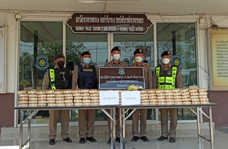 ตร.ทางหลวงขอนแก่น ยึดยาบ้าเกือบ 2 ล้านเม็ด หลังใช้รถยนต์หรูขับฝ่าจุดตรวจ ก่อนอาศัยความมืดทิ้งรถหลบหนี คาดส่งขายต่างประเทศรวมมูลค่ากว่า 100 ล้านบาท