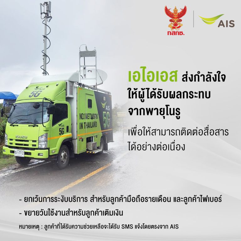 AIS ส่งกำลังใจ พร้อมมอบความช่วยเหลือประชาชน ในพื้นที่ประสบภัยน้ำท่วม จากผลกระทบของพายุโนรู เพื่อให้สามารถติดต่อสื่อสารได้อย่างต่อเนื่อง