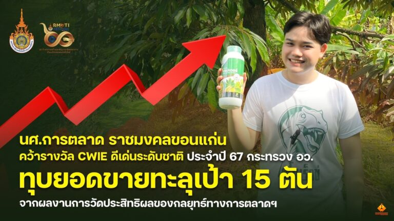 นศ.การตลาด ราชมงคลขอนแก่น คว้ารางวัล CWIE ดีเด่นระดับชาติ ประจำปี 67 กระทรวง อว. ทุบยอดขายทะลุเป้า 15 ตันจากผลงานการวัดประสิทธิผลของกลยุทธ์ทางการตลาดฯ