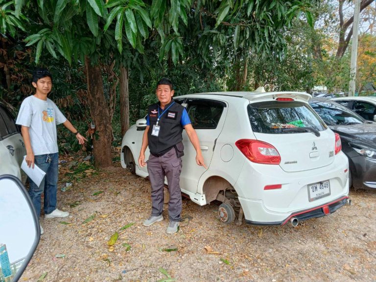 คนร้ายย่องเงียบถอดล้อรถยนต์ประชาชนที่มาติดต่อราชการที่ ม.ขอนแก่น และมาพบแพทย์ที่ รพ.ศรีนครินทร์ สูญทั้งคัน ก่อนใช้ก้อนหินมาวางรองไว้ให้ดูต่างหน้า ชาวบ้านวอนจับกุมด่วน