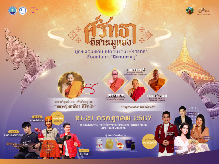 ททท.จัดงาน “ศรัทธา อีสานมูแฮง” วันที่ 19 – 21 กรกฎาคม 2567 ณ ลานวัฒนธรรม หอศิลป์มหาวิทยาลัยขอนแก่น