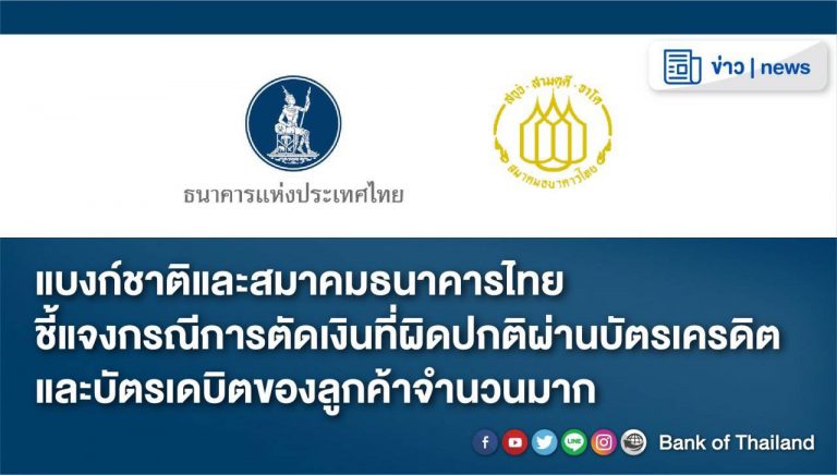 ธปท. และสมาคมธนาคารไทย ชี้แจงความคืบหน้า กรณีการตัดเงินที่ผิดปกติผ่านบัตรเครดิตและบัตรเดบิต