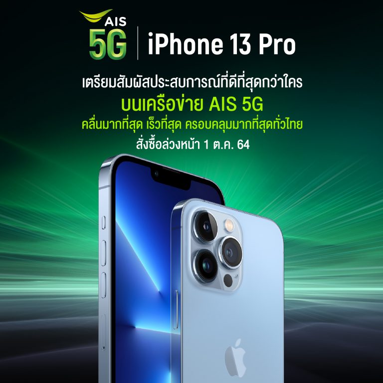 AIS5Gเตรียมวางจำหน่ายiPhoneรุ่นที่ดีที่สุดเท่าที่เคยมีมาทั้งในด้านนวัตกรรมและความงาม ได้แก่iPhone13Pro, iPhone13Pro Max, iPhone13 และiPhone13miniโดยiPhone13ProและiPhone13Pro Maxได้รับการออกแบบใหม่ตั้งแต่ภายในจรดภายนอก มาพร้อมระบบกล้องระดับโปรที่ล้ำสมัยที่สุดที่เคยมีมาบนiPhoneจอภาพSuper Retina XDRและProMotionแบตเตอรี่ที่ใช้งานได้ยาวนานขึ้น ชิปA15Bionicพร้อมGPUแบบ 5-coreที่ออกแบบโดยAppleและประสบการณ
